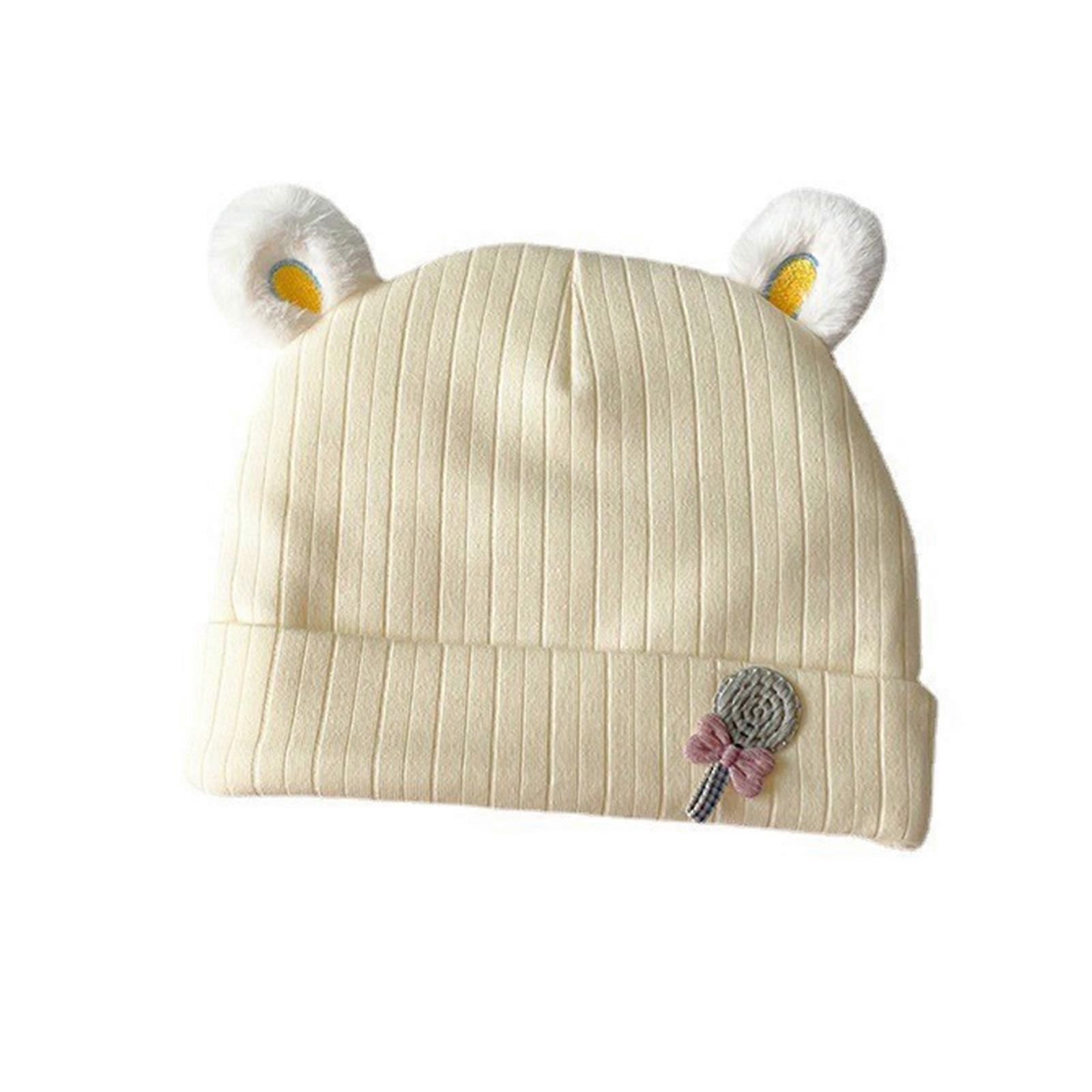 Cartoon Cotton Hat Foldable Infant Cap with Ears Protections for Newborns Soft & Warm Winter Accessory for Boys & Girls light yellow