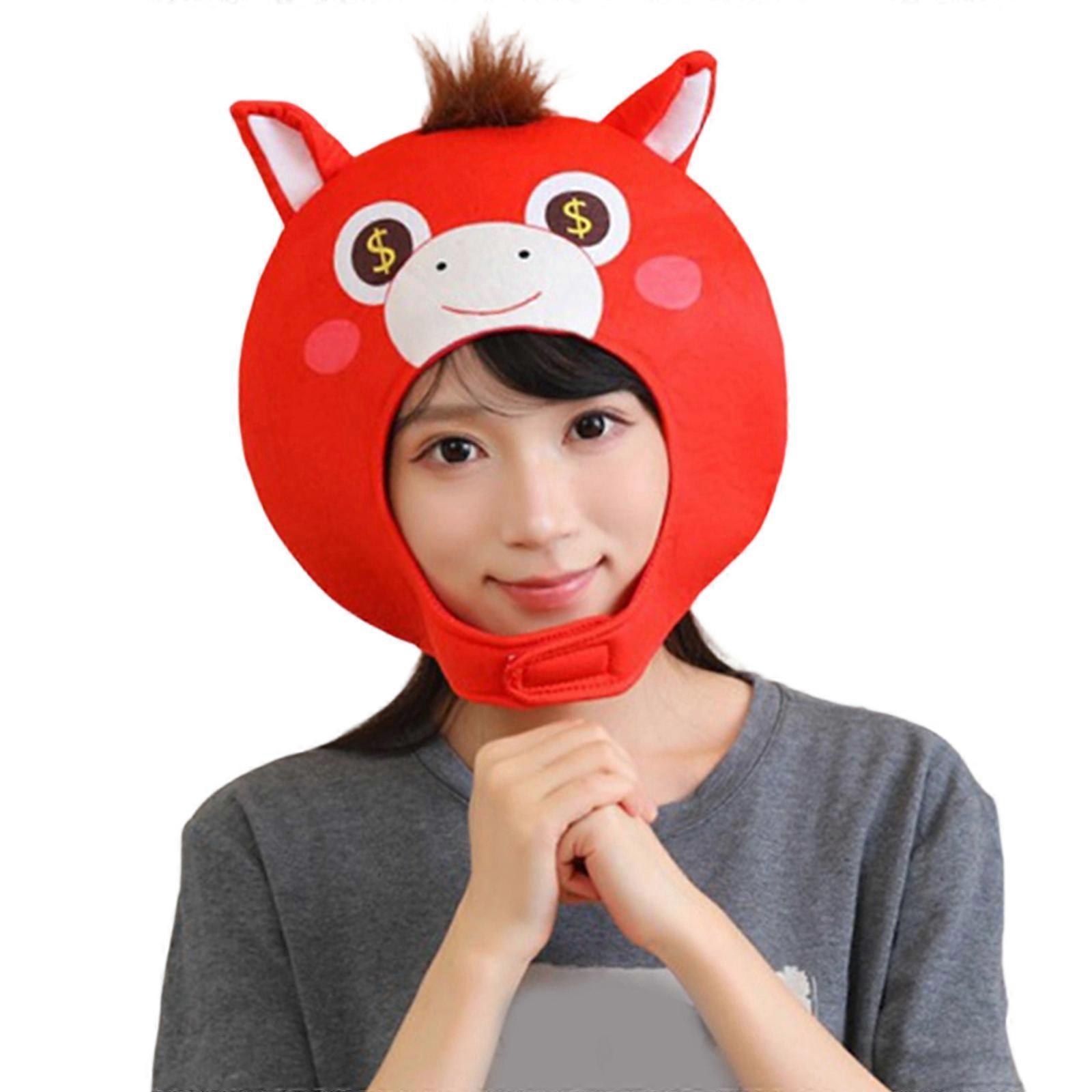 Year Of Horse Headgear Hat Comfortable Headcover Cap For Children Adult Festival Photoshoots Stage Performances Props Red