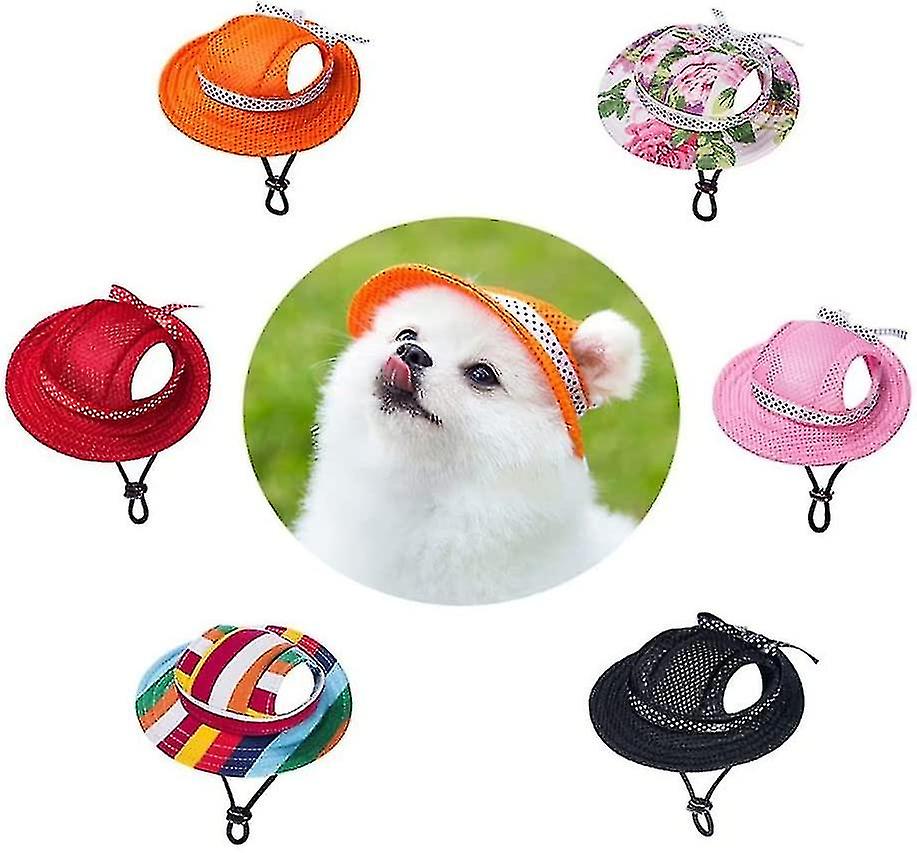 Pet Dog Hat,sun Visor Cap With Ear Hole,breathable Summer Sunhat With Adjustable Neck Strap Pet Princess Cap