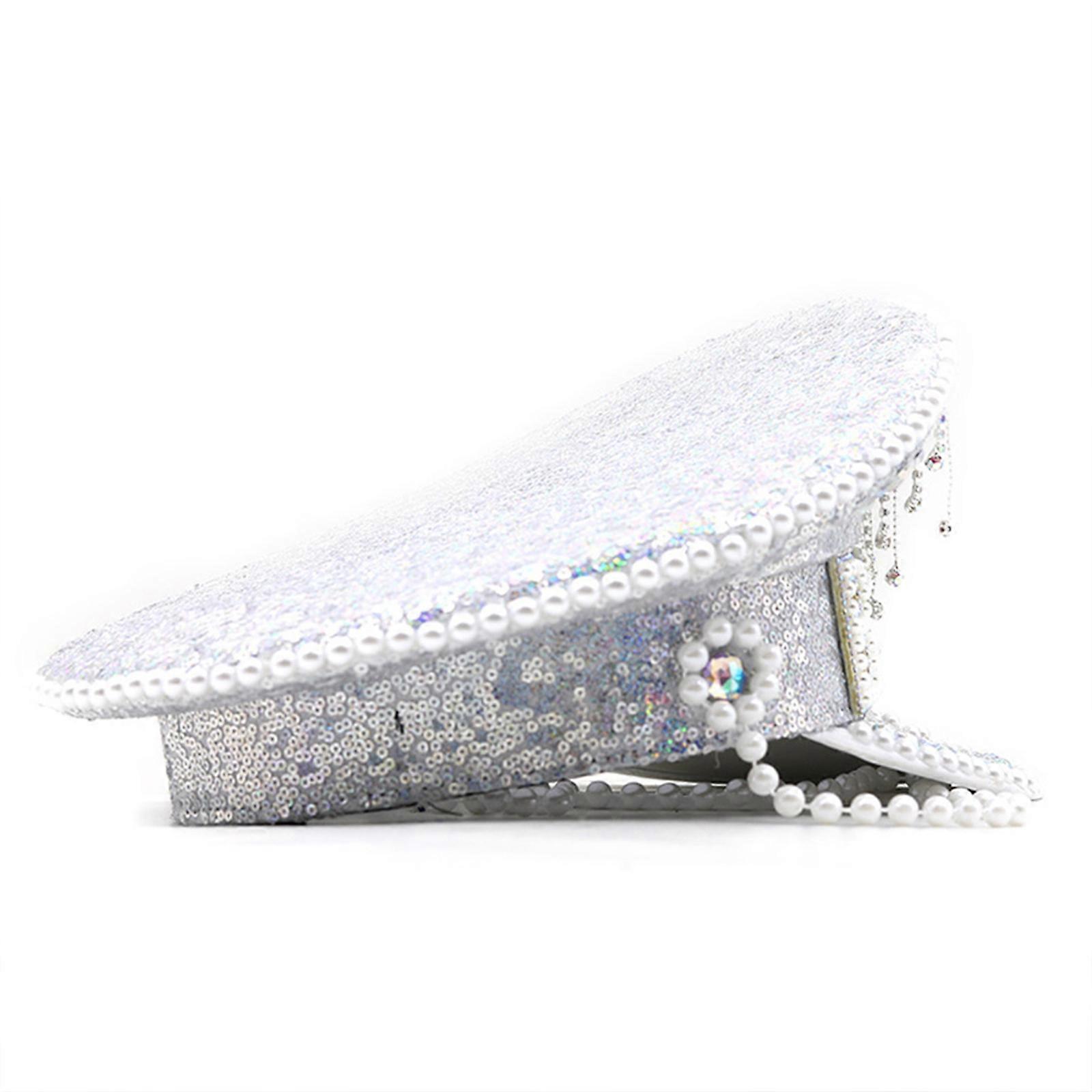 Bride Hat with Hand Beading Shining Crystal Captain Hat Beaded Heavy Pearls Captain Hat for Bachelorette Party Silver
