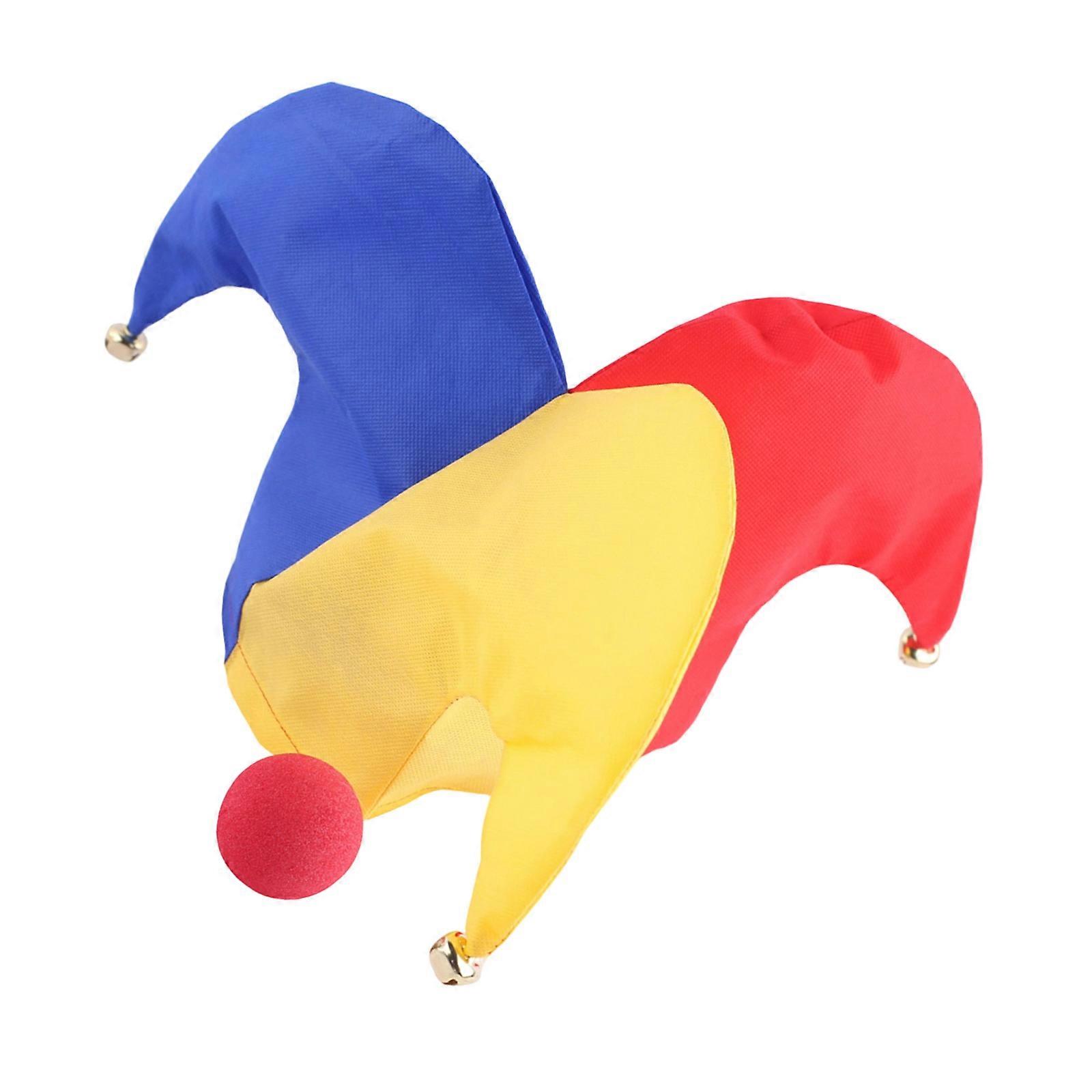 Mardi Gras Jester Hat Clown Nose 2Pcs Set Jester Costume Accessories Funny Halloween Costumes Cosplay for Carnivals Multicolor