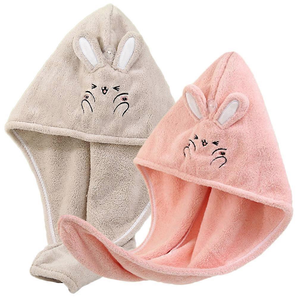 Absorbent Hair Drying Wrap Towel Hat for Women – Quick Dry Turban Wrap with Cartoon Design for Wet Hair After Bathing – Daily Use Pink Camel