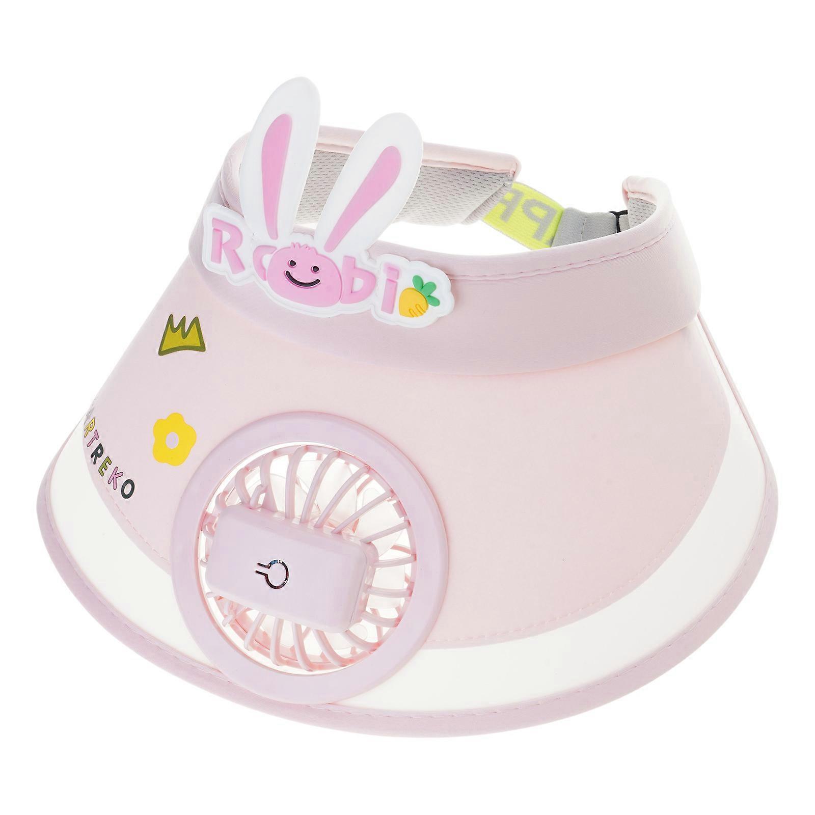 Empty Top Visor Cap for Children Unisex Top Air Cap Girl & Boy UV Isolation Skin for Protection with Rechargable Fan Pink