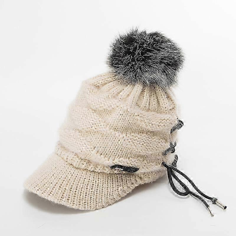 Autumn and Winter New Knitted Fleece Warm Women's Peaked Cap Big Hairball Tethered Beret 25-26