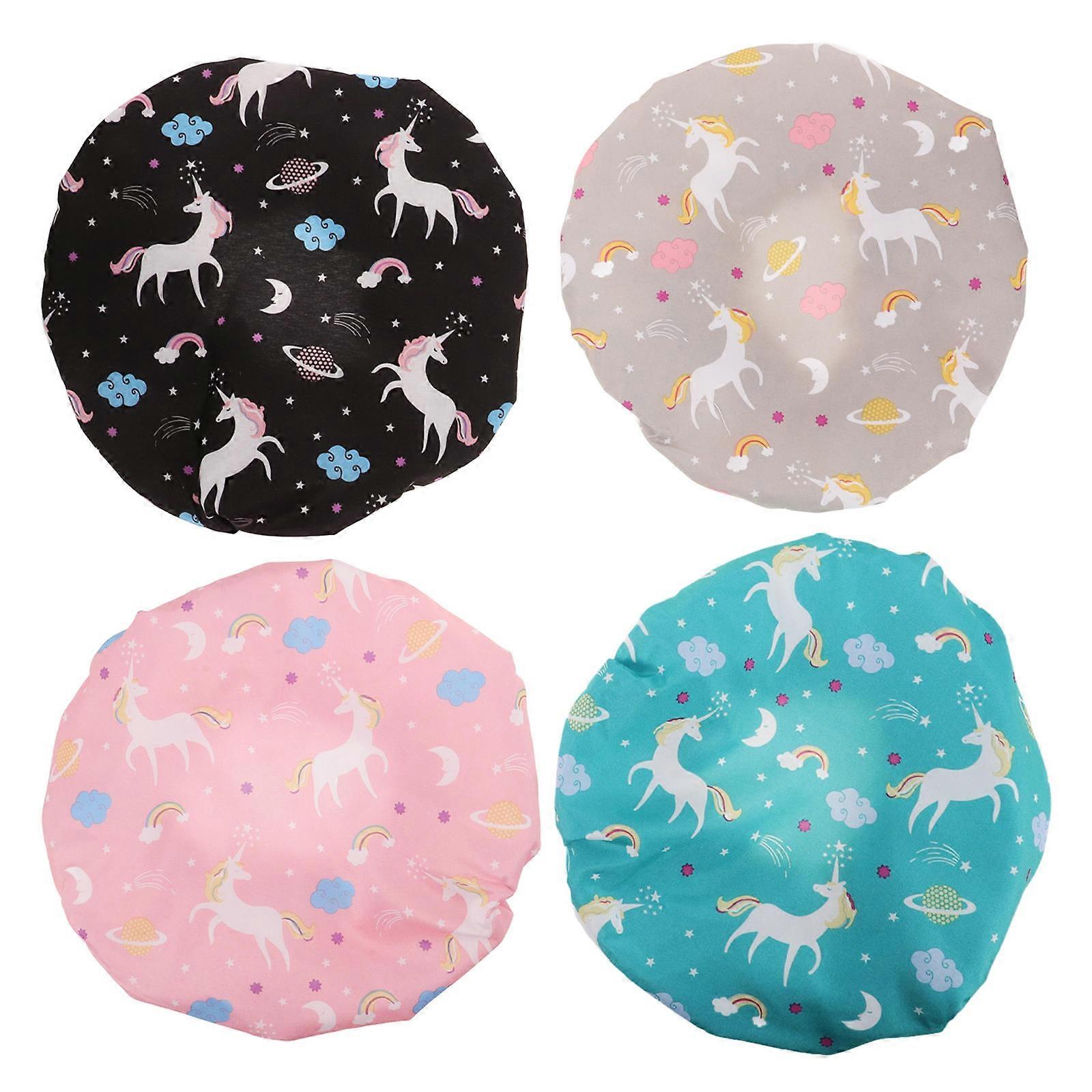 Shower Hat For Women 4PCS Water Resistant Elastic Double Layer Perfect For Showering SPA And Makeup Face Cleaning