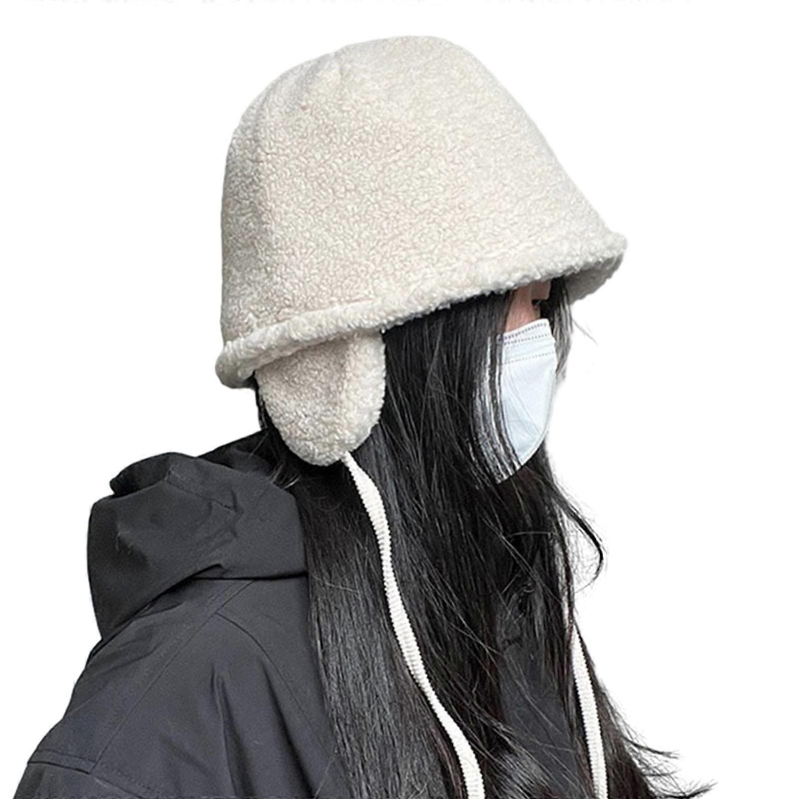Berber Fleece Pullover Hat for Girl Soft Ear Flap Beanie Cap Outdoor Sports Hooded Hat Windproof Breathable Bonnet Hat White