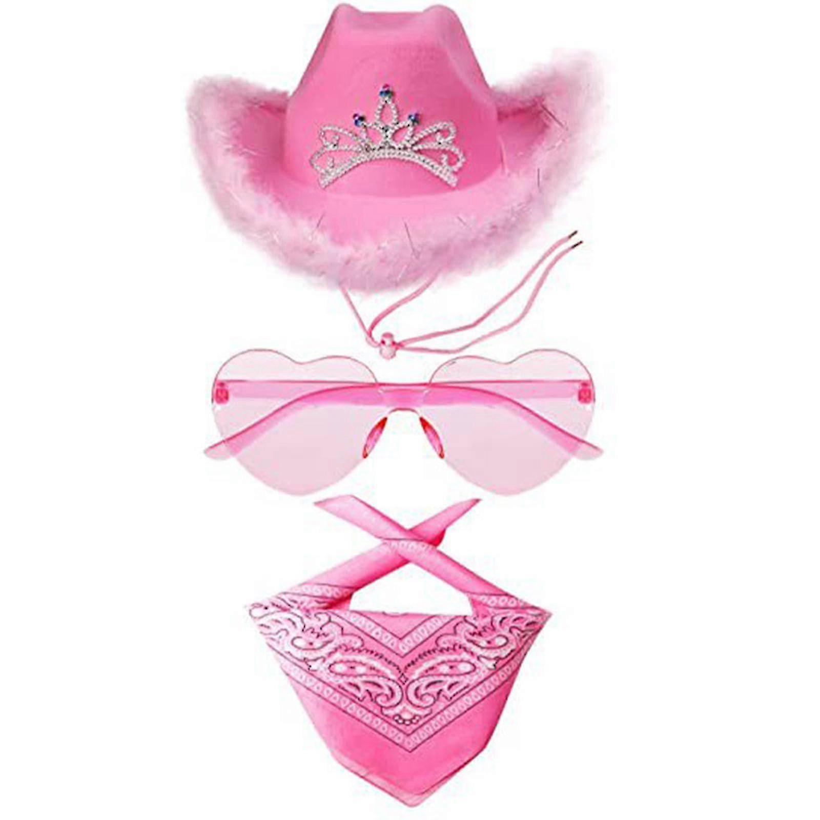 Hat Set Cowgirl Hat Sd Sunglasses For Girl Women Men Bachelorette Costume Jb5-2