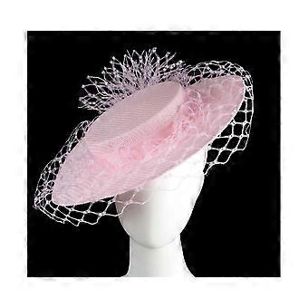 Pink boater hat with face veil by Fillies Collection S305PI