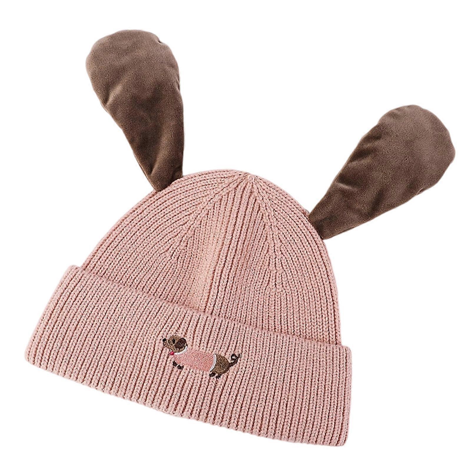 Comfortable Acrylic Knit Hat With Fashionable Embroidery Ear Cover For Women Men Kids Indoor Outdoor Winter Use Pink