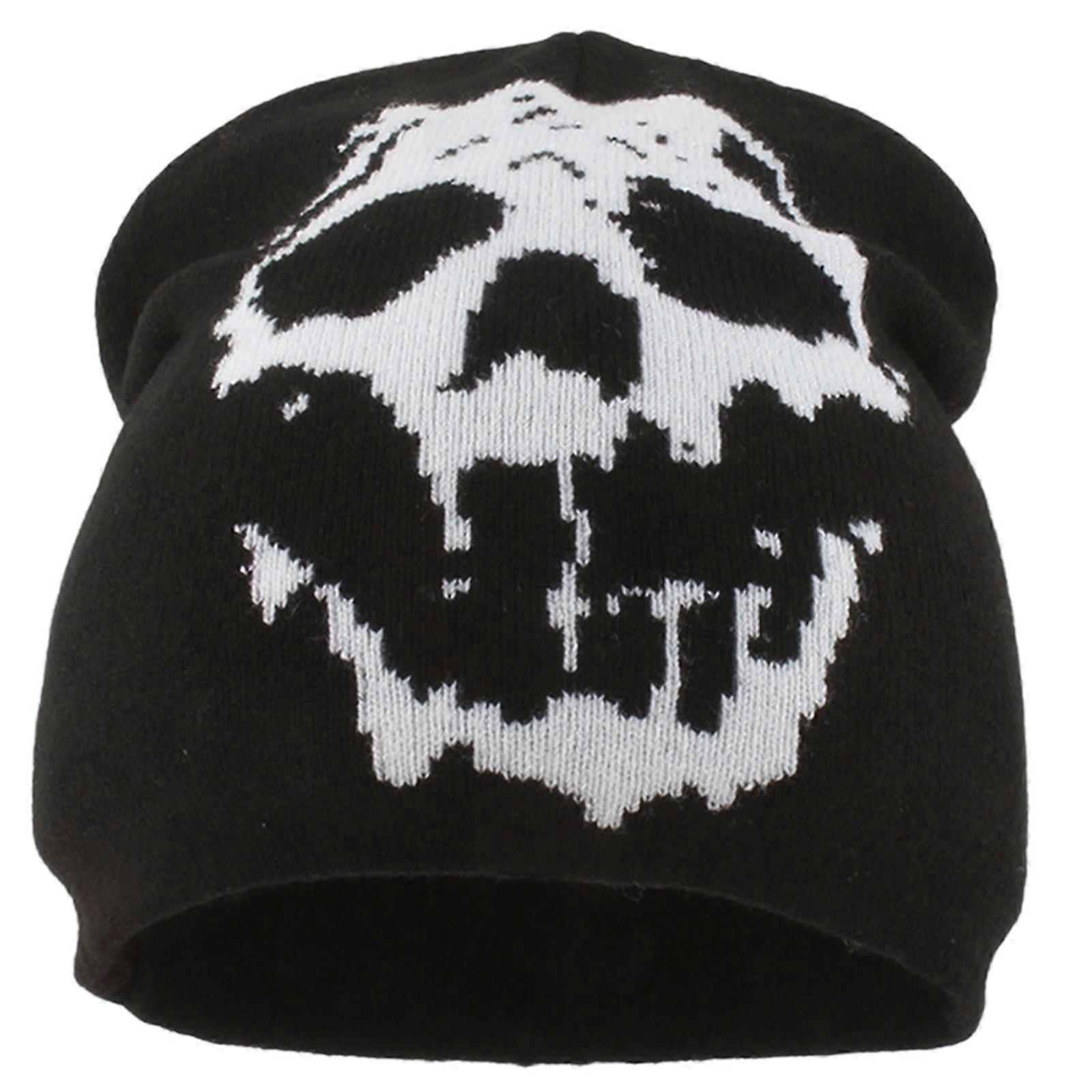 Soft Acrylic Anime Skull Knit Hat Elastic Fit Halloween Eye Detail Unisex Cap For Casual Wear Outdoor Sports Black and white
