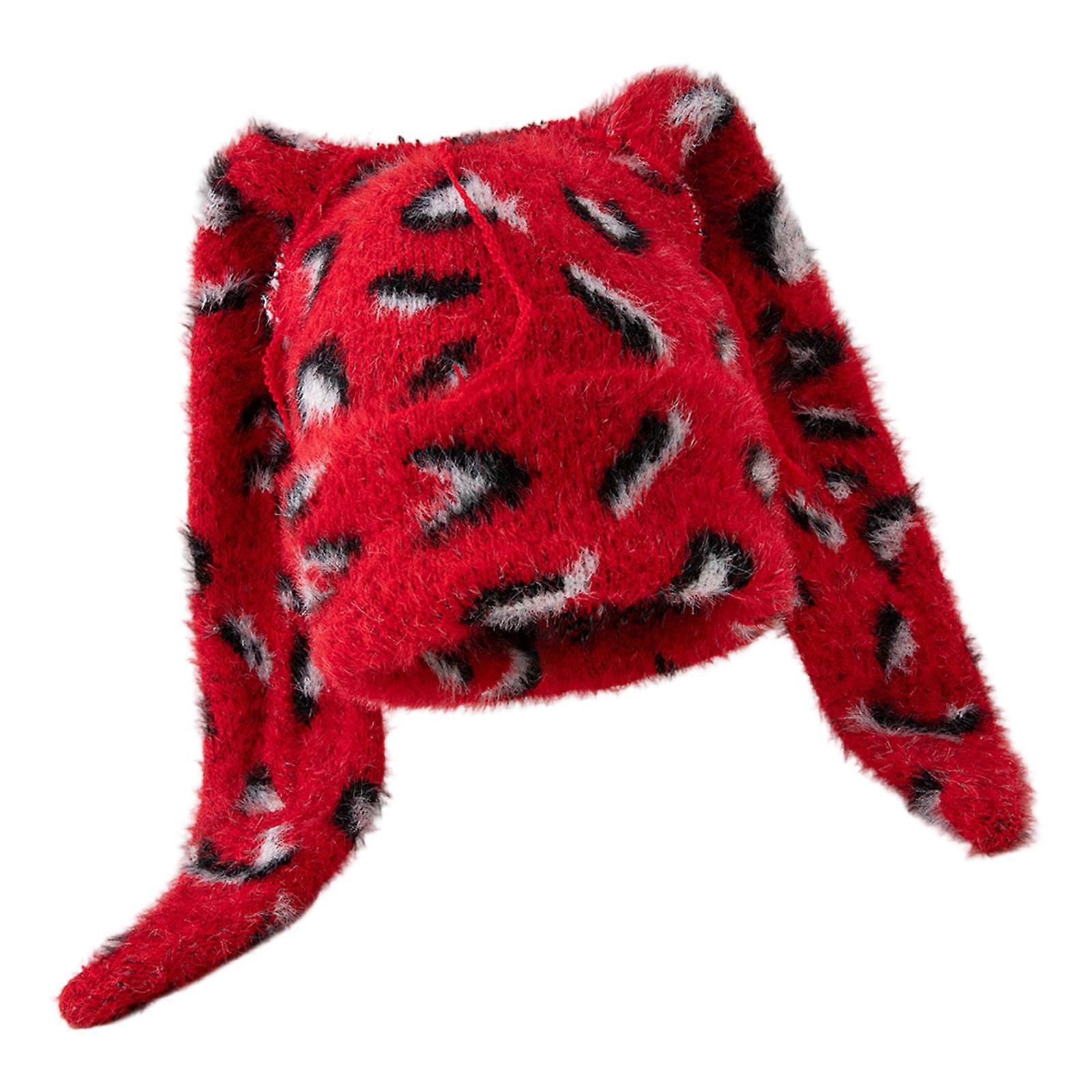 Warm Acrylic Yarn Spotted Leopard Earflap Hat Comfortable Knit Beanies For Fall Winter Adults Children Red