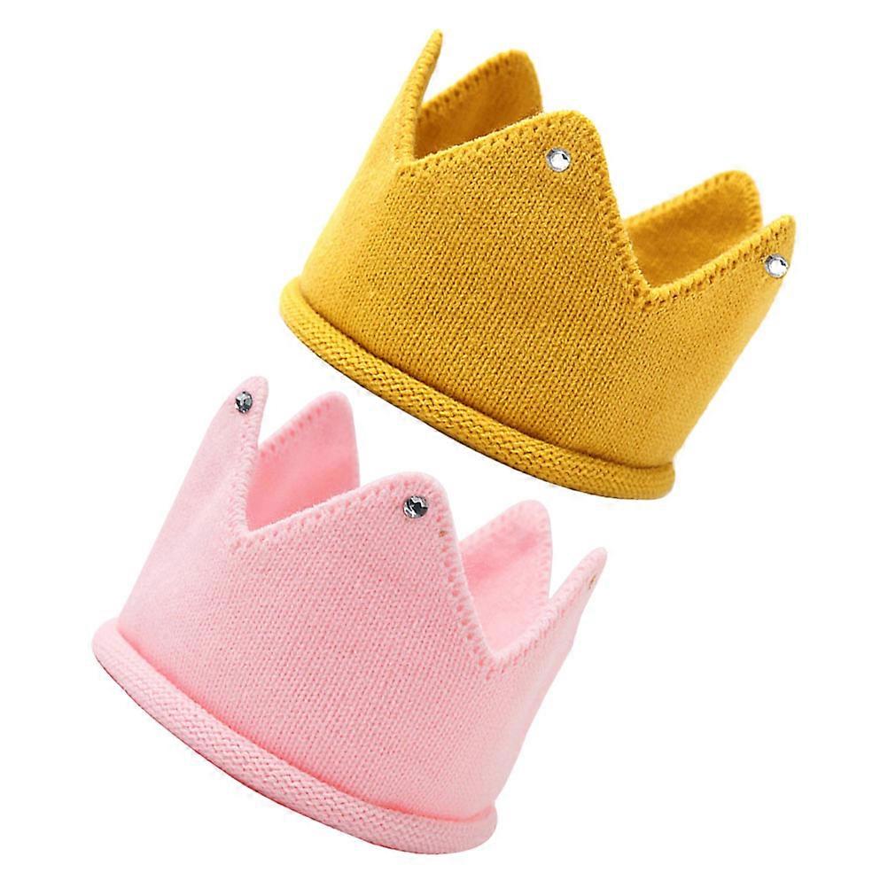 Knitted Hat for Girls for Kids Wearing 2Pcs Assorted Color Crown Caps