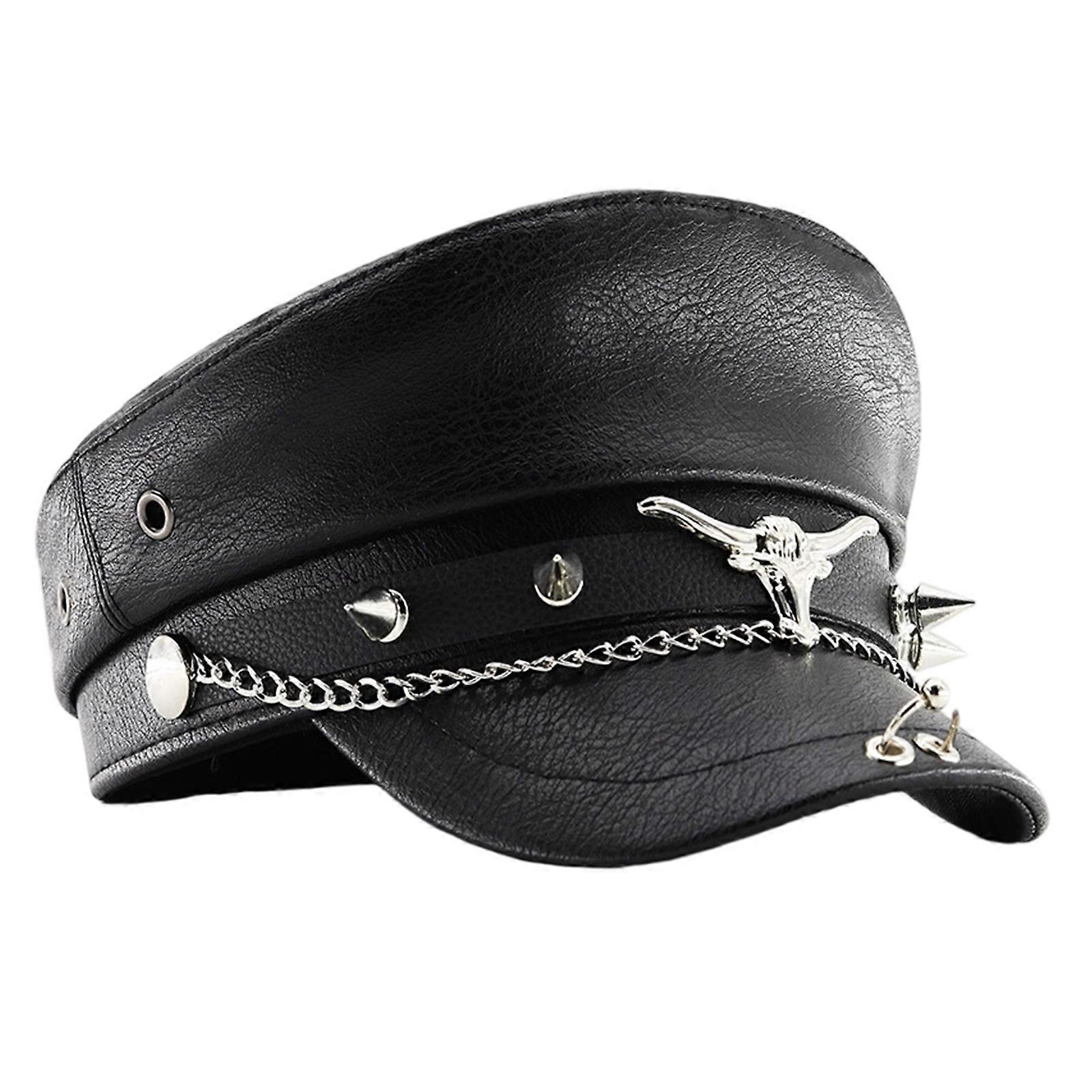 Features: Craft from PU leather, polyester and metal chain decoration, which has good wear resistance and wrinkles resistance, ensuring that the hat can maintain a good appearance after long-term use. Decorated with exquisite bullheads rivet chains, adding a retro styles while enhancing the overall design senses. Designed for vintage enthusiasts and streetwear lovers seeking bold accessories to elevating casual outfits, concerts, or adventures. This retro hat is not only a fashionable item, but also effectively shades and protects the sun. Suitable for daily travel, outdoor activities and leisure occasions. Specifications: Outer Component: PU Leather Inner Component: Polyester, metal chain decors Color: Black Size:approx. As picture shown Height 10cm/3.93in Suitable for head circumference :approx. 55cm/22.83in Quantity: 1pc Package Includes: 1pc Cap note: Please allow 1-3cm error due to manual measurement. please sure you not mind before you bid. Due to difference between different monitors, the picture may not reflect the actual color.