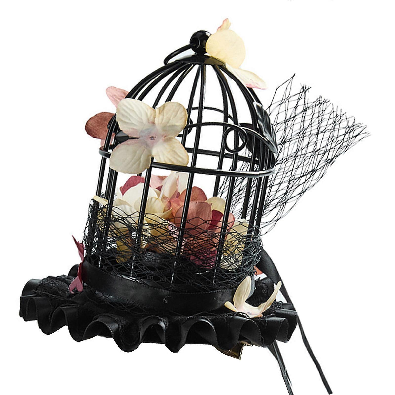 Gothic Antique Birdcage Miniature Top Hat With Flower Decors Unisex Costume Accessories For Halloween Cosplay Event Multicolor
