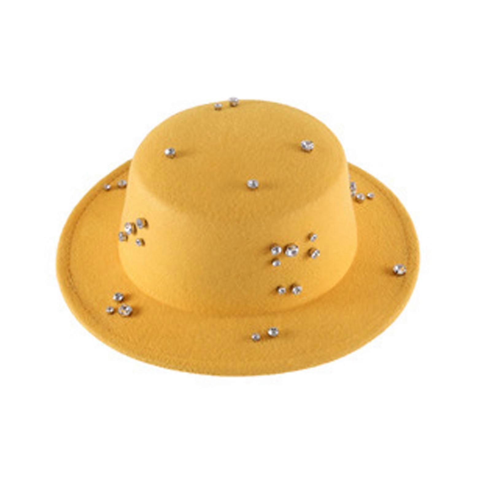 Sparkling Flat Top Hat With Rhinestones Studded Multipurpose Headwear Bowler Cap For Wedding Event Daily Outfit Enhancer Yellow