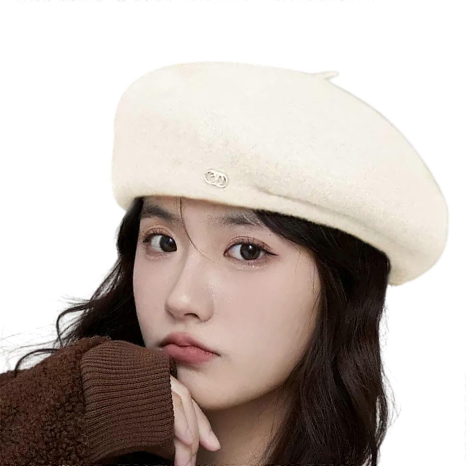 Elegant Wool Beret Winter Essential Soft Warm Stretch Hat Cold Weather Headgear Unisex White