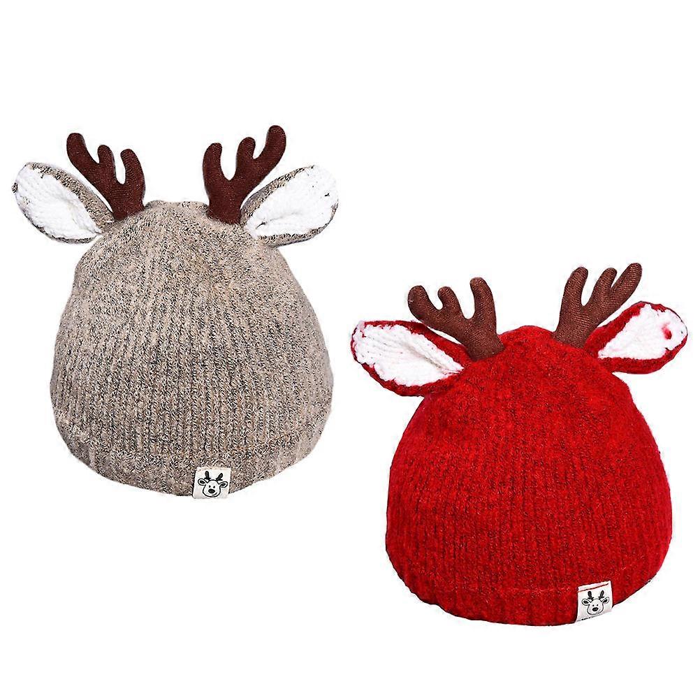 Winter Antler Baby Woolen Hat for 2Pcs Kids Knit Caps