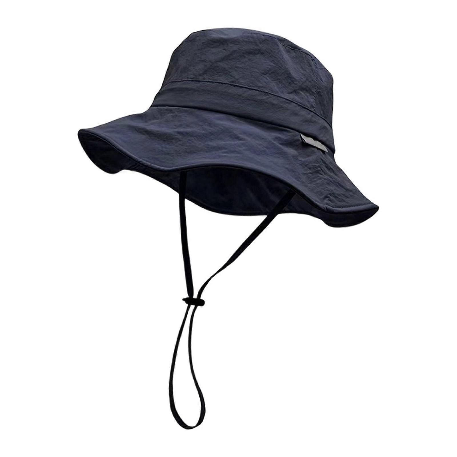 Unisex Summer Outdoor Hat Sun Protection Foldable Wide Brimmed Beach Camping Navy blue