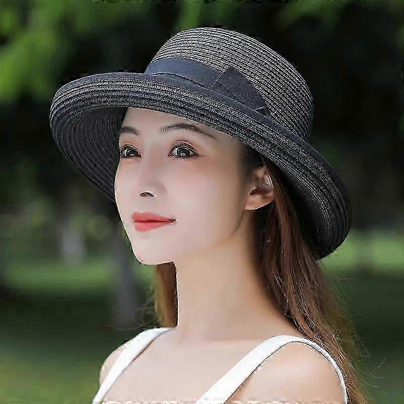 Summer Beach Straw Hat Women's Bow Seaside Large Sunshade Sunshade Curling Cool Hat 25-26