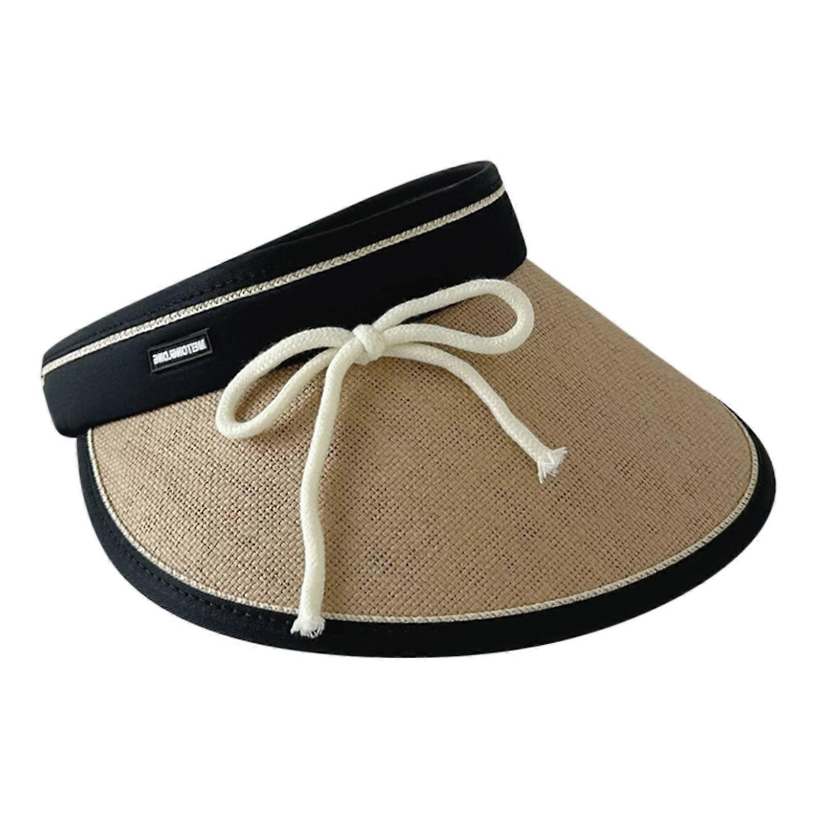 Girl Modern Straw Hat Empty Top Baseball Hat For Girls Versatile Straw Hat Bow Breathable Hat Cute Bow Photo Props Khaki aldult