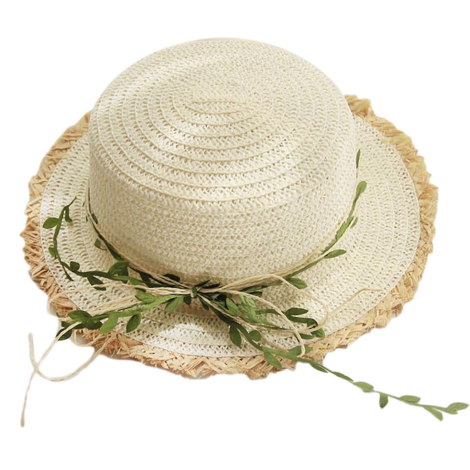 Lovely Leaf Decro Sunshade Straw Hat Parent-child Hat Summer for Sun Hat Fisherman Hat for Sun for Protection for Beach milky Childrens average