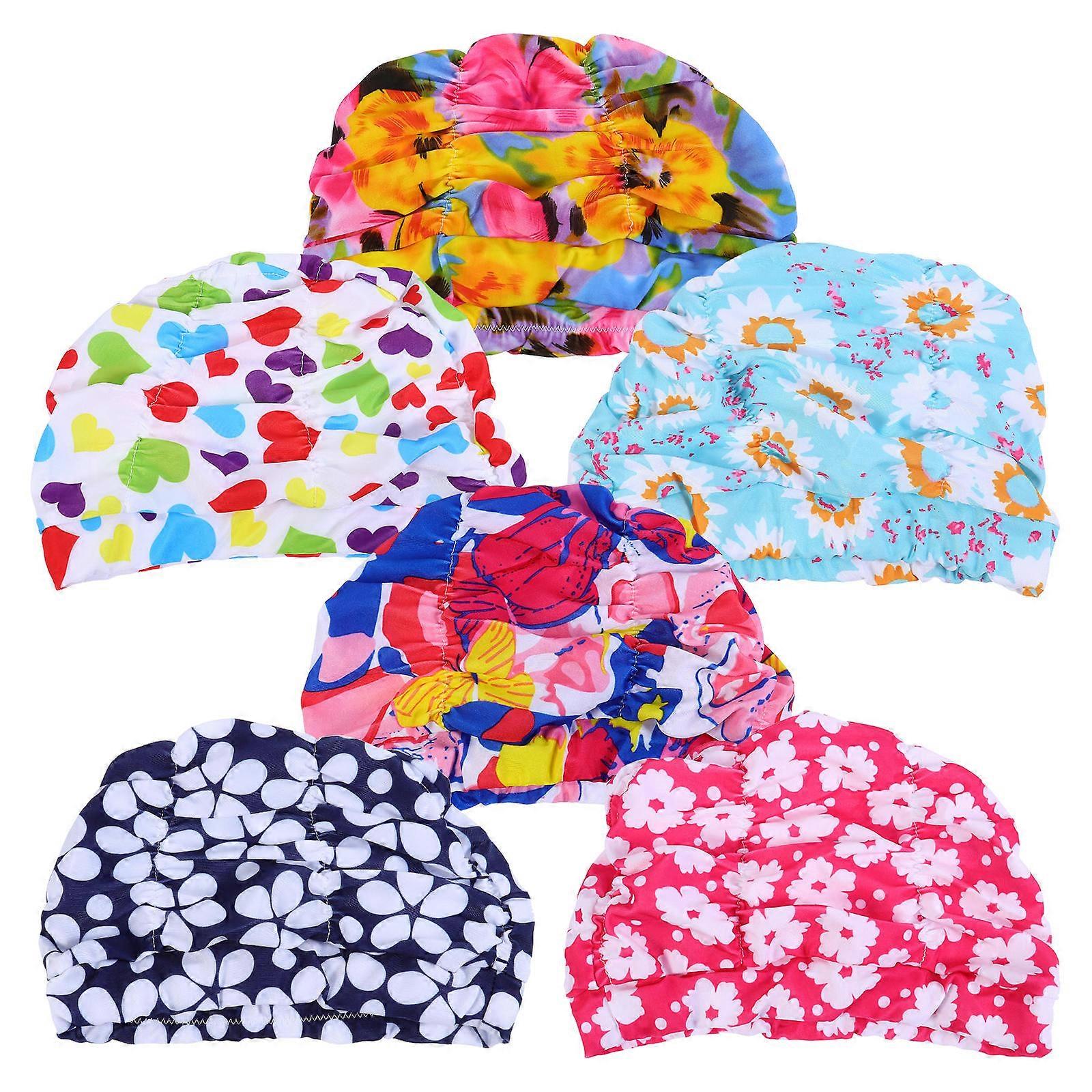 Printed Swimming Cap Pleated Waterproof Swim Hat 6Pcs for Swimming Use