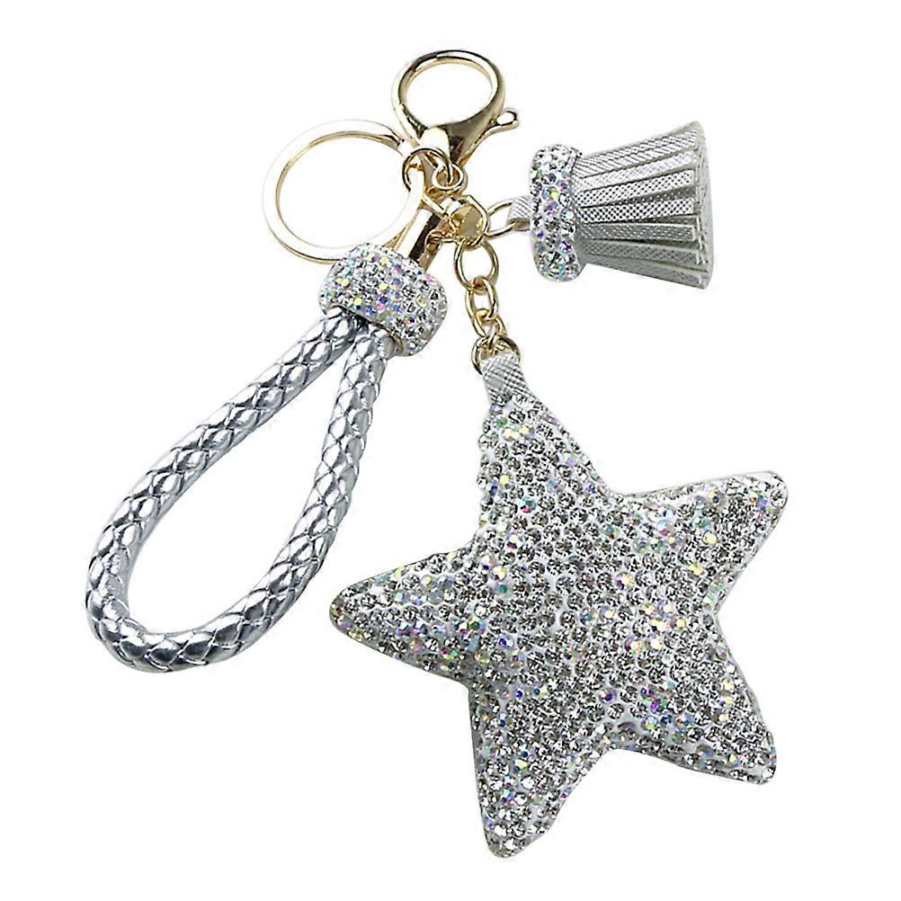 Star Keychain Aesthetic Rhinestone Keychain Pendant Pentagram Design Car Key Ornament 16x8x2cm Silver Pu Crystal Key Organizer 1Pack