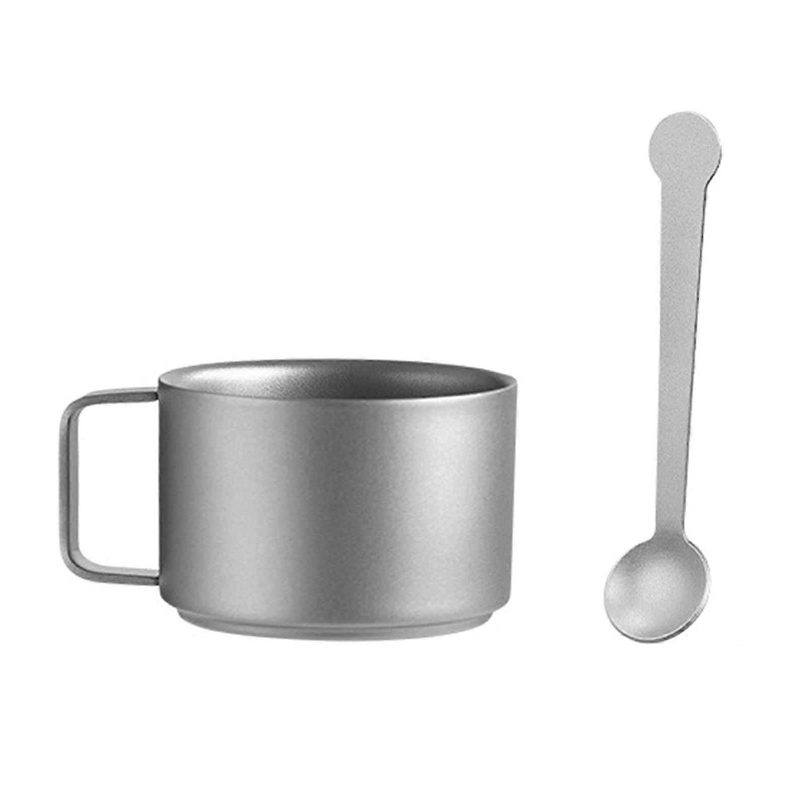 Features: Make from metal alloys, strong, light weight and enduring, highly heat resistance. The cup is double layer, which effectively prevents scalding, so you can enjoy your hot drink without fear of scalding. The edges is smooth processed to give you a better taste experience. Small in size, light in weight, easy to carry and can put into various camping bag. Suitable for outdoor picnics, camping, mountain climbing and skiing and backpacking travel. Specifications: Component: metal alloys Type: Cup/Cup and Spoon Cup Size: about 8x6.30x4.3cm/3.15x2.48x1.69inch Spoon: about 8.8x1.8cm/3.46x0.71inch Package Includes: 1pc Coffee Cup/1pc Coffee Cup, 1pc Spoon note: Please allow 1-2cm errors due to manual measurement, make surely that you not mind before order. Due to difference between different monitors, the picture may not reflect the actual color.