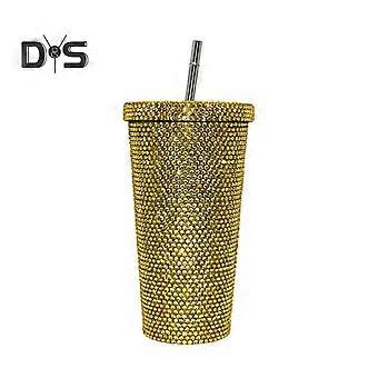 Bling Rhinestones Thermal Cup Stainless Steel Insulated Tumbler with Lid And Straw Sparkling Rhinestones Water Bottle Gift for Valentine's Day