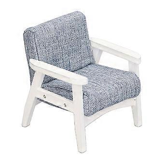 Miniature Armchair 1/12 Scale White Armrest Blue-Gray Living Room Single Sofa Dollhouse Toys for Decoration