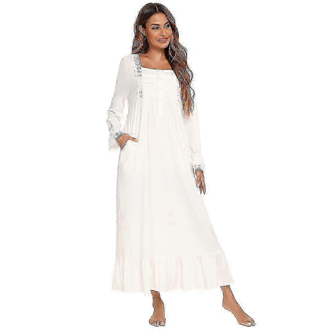 Women's Victorian Nightdress Cotton Knit Soft Long Sleeve Henley Vintage Nightgown Lounge Nightshirt Lace Trim Sleep Shirt Maternity Nursing Nigh