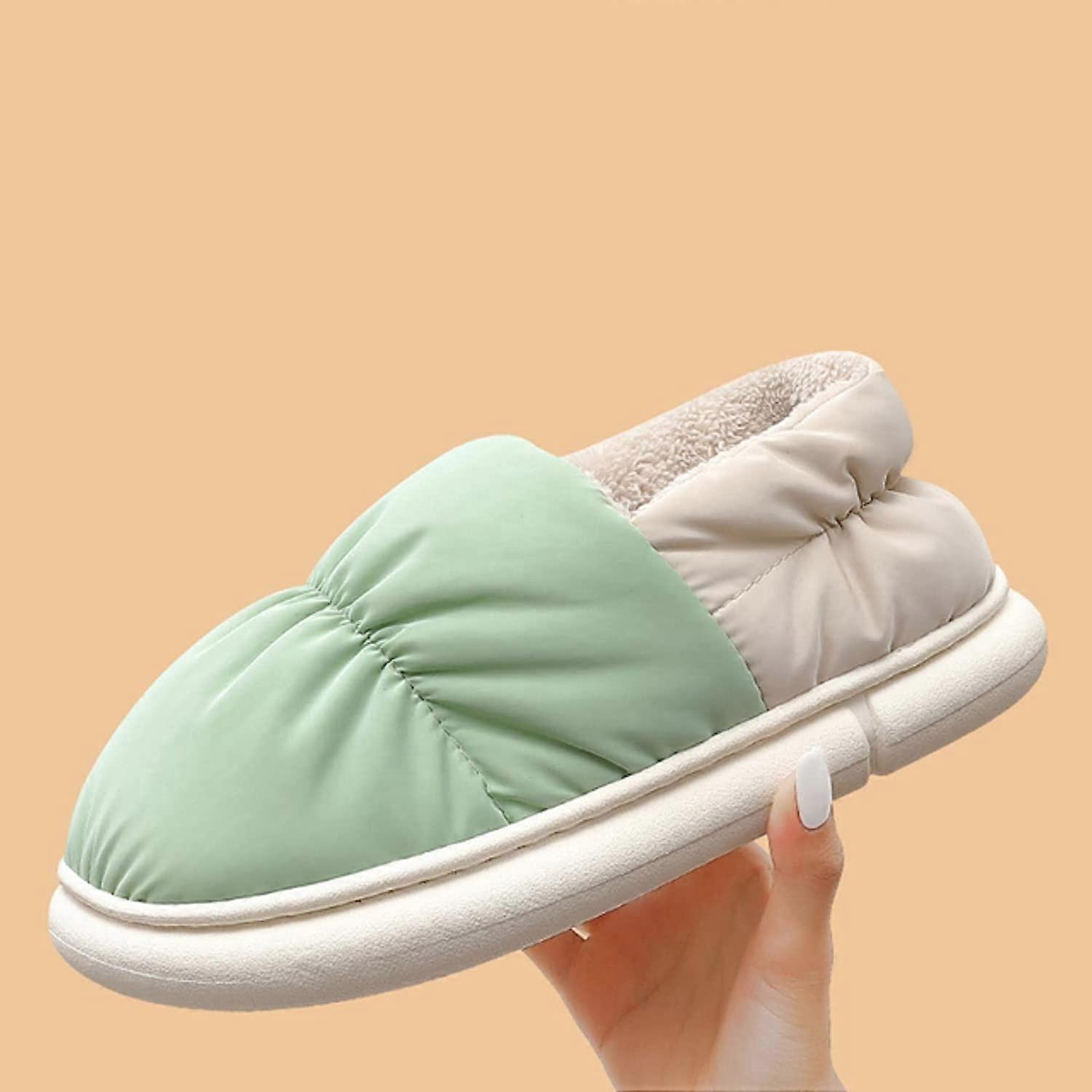 Cotton Winter Womens Men Autumn Cotton Fur Slippers Home Waterproof Indoor Casual Warm Non-Slip Cute Plush Couple Ladies Slides Shoes (D-4-0)
