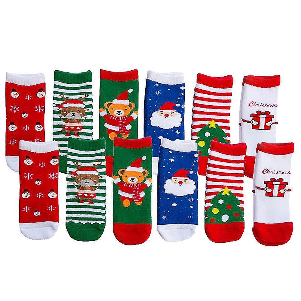 Combed Cotton 6 Pairs Kids Christmas Stockings Cute Cartoon Warm Socks for Children Ages 1-3 Assorted Color