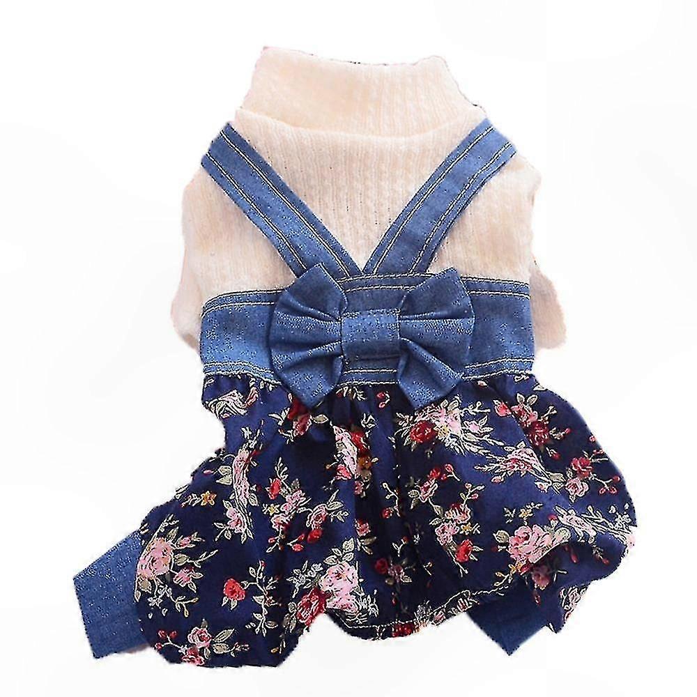 Blue Denim Overall Dress for Pets Summer Cotton Skirt with Strap Cat Dog Costume Daily Apparel