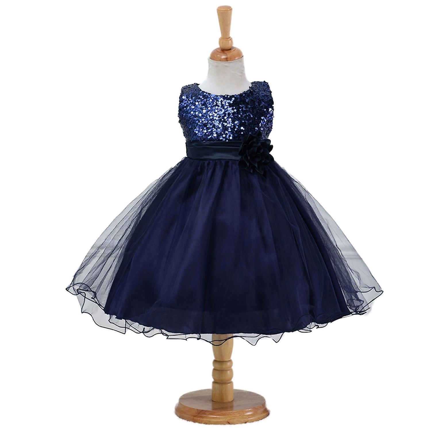 Navy Blue 150cm Sequined Flower Girl Dress for Special Occasions