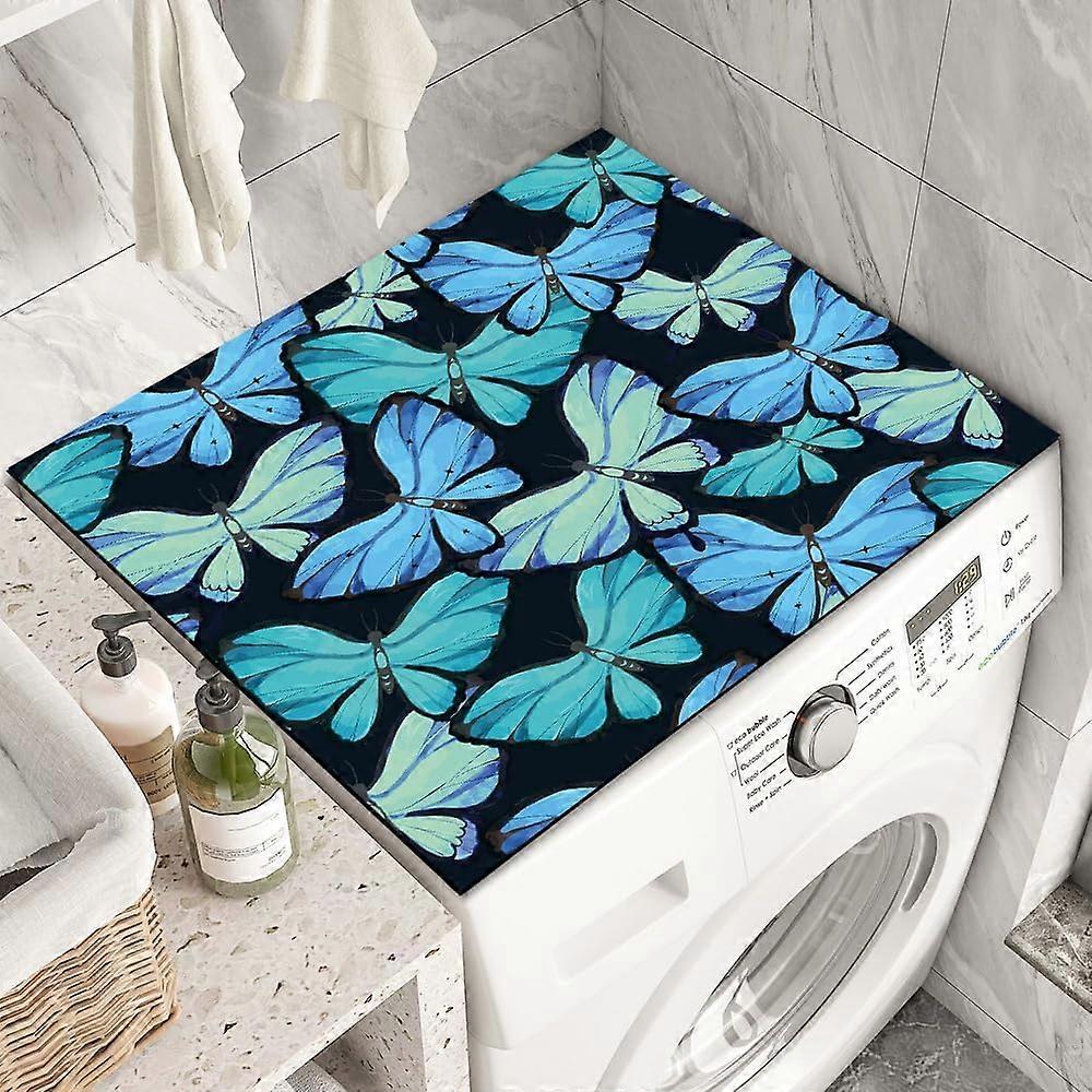 (Blue, 23.6'' x 19.68'')Washer and Dryer Top Covers Anti-Slip Absorbent Mat Washing Machine Fridge Dust-Proof Cover Butterfly Washer Dryer Top Protect