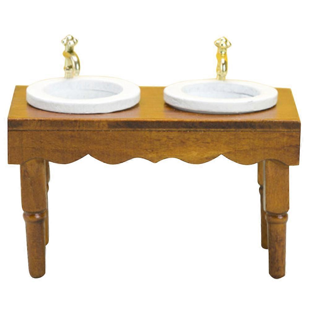 Wooden Miniature Wash Sink for Doll House Decoration 2Pcs Bathroom Sink