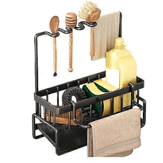 Kitchen Sink Caddy Sponge Holder with Drain Tray Rustproof Corrosion Resistant Easy to Install Towel Holder Brush Drainer Rack Kitchen Organizer
