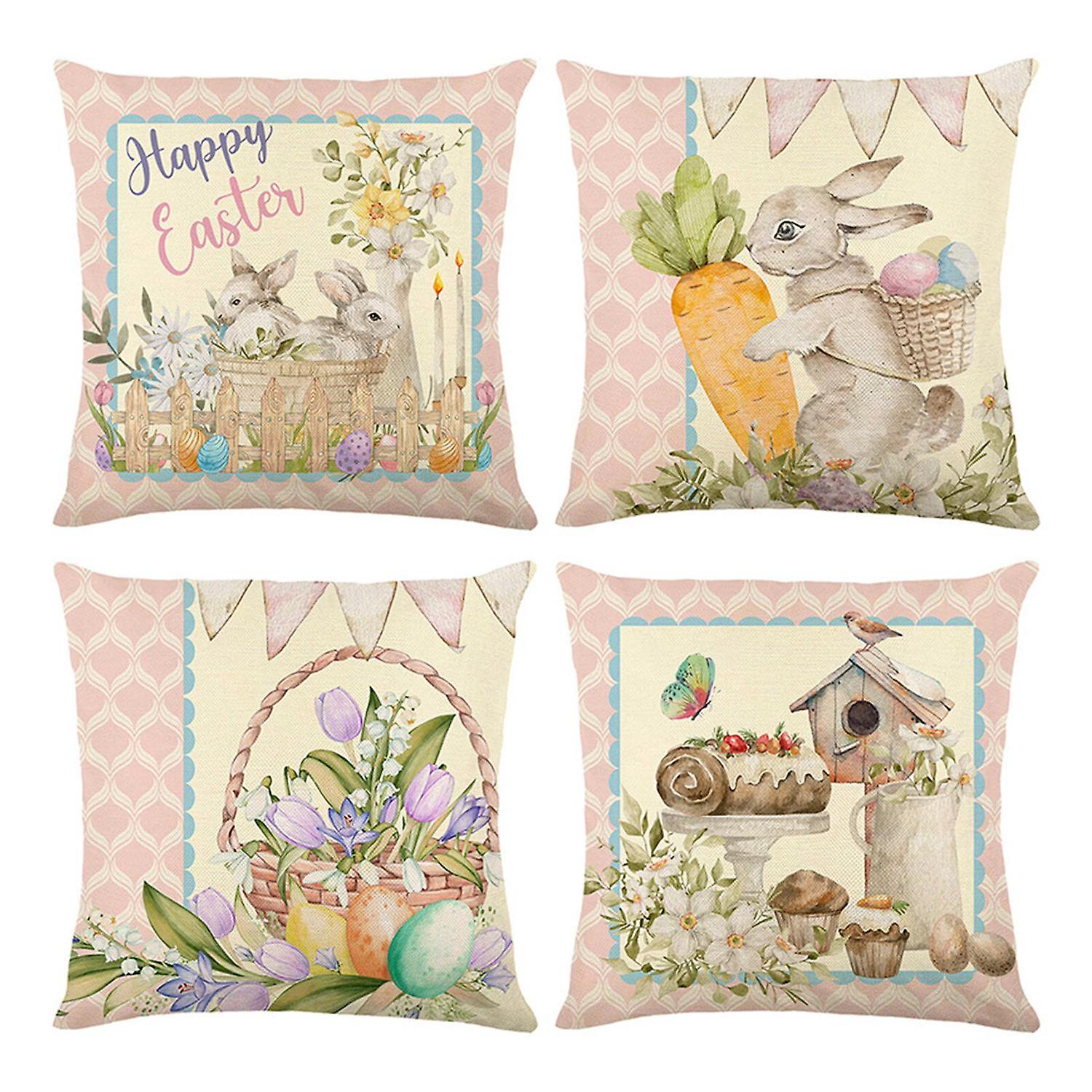 Easter Decor Linen Pillow Covers, Rabbit & Egg, 4-Pack, 18x18in