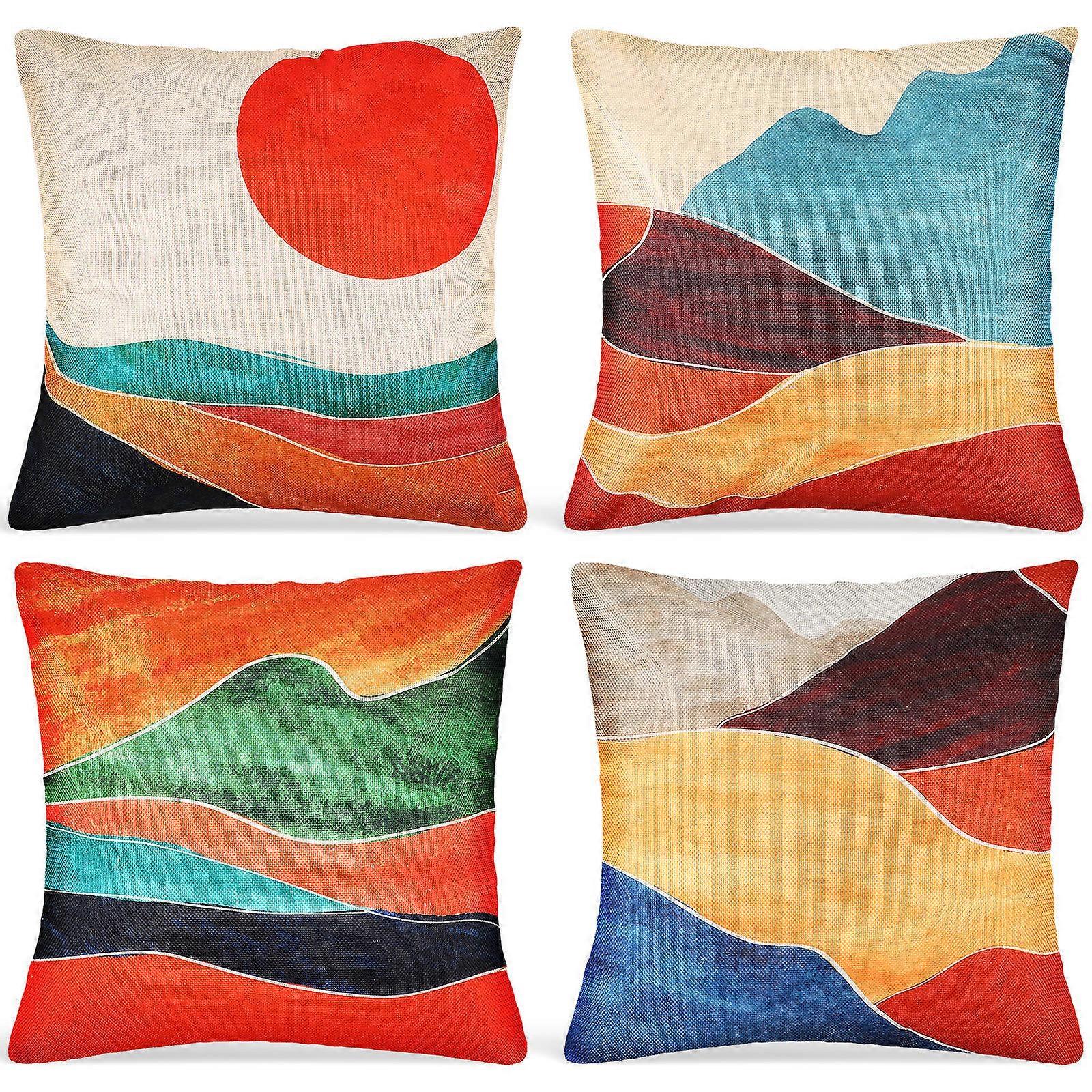 Decorative Square Throw Pillow Covers Abstract Sun Landscape Painting For Family Friends 17.68X17.68In 4Pcs