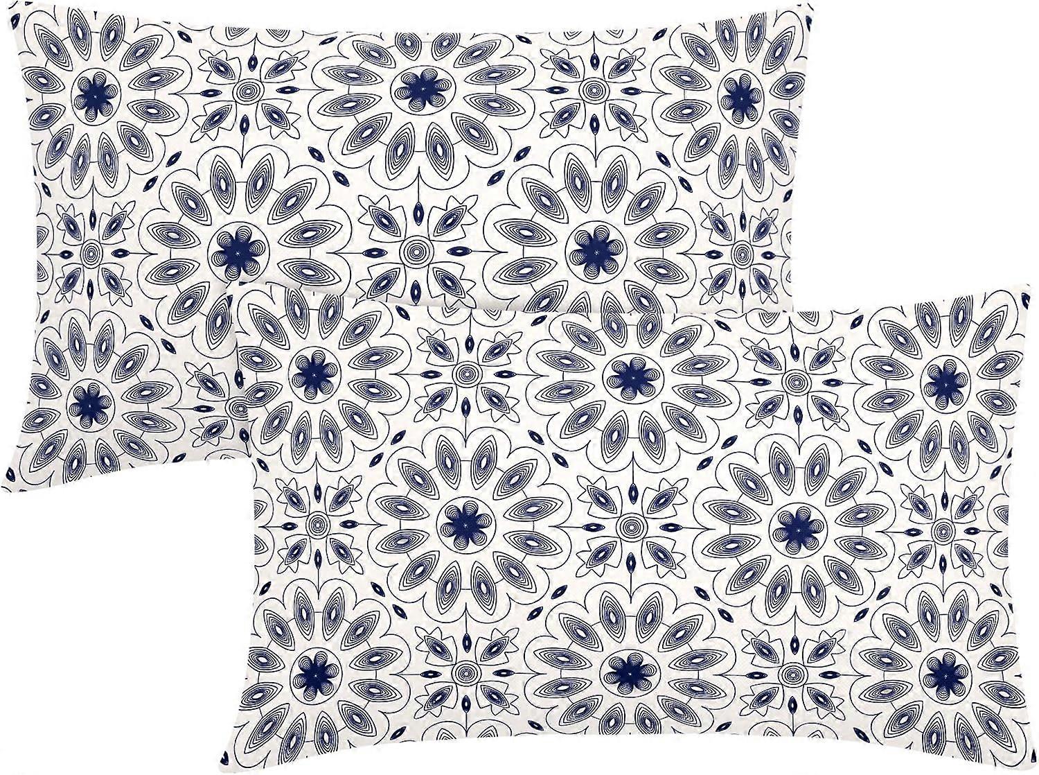 Navy Blue Floral Rectangular Pillow Covers 12X20 Inch Rustic Flower Accent Lumbar Pillow Cases Blue White Recgantle Throw Pillows Set of 2 Home Decor