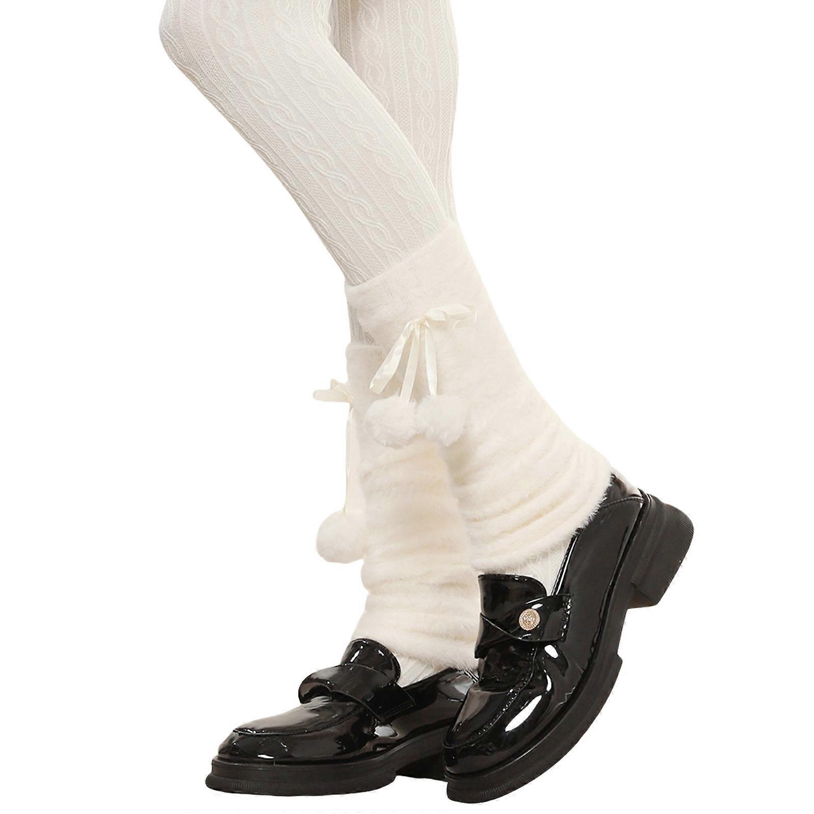 Winter Warm Acrylic Fuzzy Boot Covers With Furry Plush Bows Turn Cuffs Long Leg Warmers Footless Socks For Women Girls Multicolor