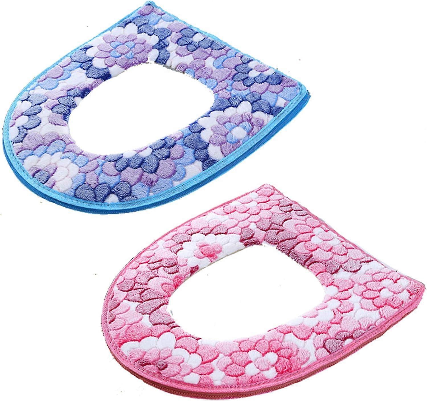 Toilet Seat Covers Cushion Bathroom Warm Skin-Friendly Four Seasons Available Zipper Easy to Fit Washable and Reusable 2 pcs (Blue&Pink),2024 Ping