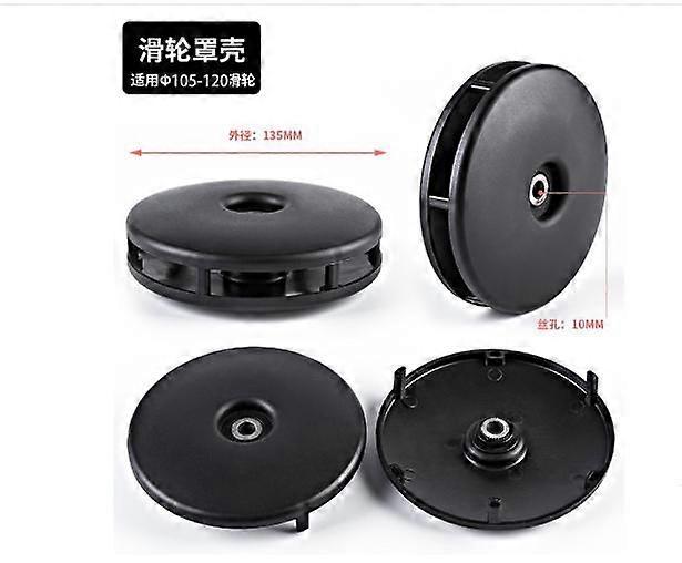 Description Our fitness equipment accessory is designed to fit pulley wheels, providing a durable plastic cover that ensures smooth operation. This pulley cover is suitable for home gyms, offering protection and longevity to your exercise equipment. Its sleek design seamlessly integrates with your existing setup, enhancing both functionality and aesthetics. Features -Color:Black -Material:Plastic -Size:14.00X14.00X3.00cm/5.50X5.50X1.18in -Compatibility: precisely fits various fitness equipment, enhancing training efficiency and experience, giving your gym equipment a fresh look -Durability: made of plastic material, wear resistant and durable, effectively extending the pulleys lifespan and reducing frequent replacement hassles -Noise reduction: uniquely designed pulley cover effectively reduces noise, creating a quieter workout environment, suitable for both home and commercial gyms -Versatility: compatible with 105 to 120 pulleys, flexibly matching different brands and models, simplifying the purchasing process and easily upgrading your fitness equipment -Smooth rotation: ensures smooth rotation, reducing resistance, helping users achieve more fluid strength training movements, and enhancing fitness resultsPackage list: 2 pairs of fitness pulley accessories