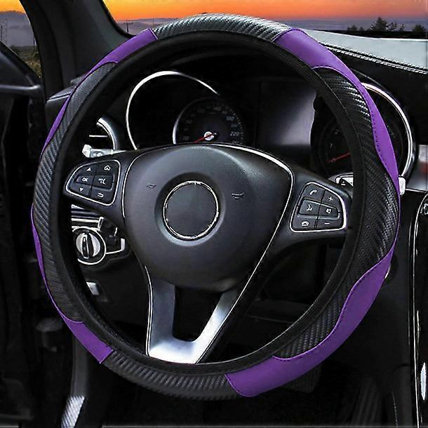 38CM Steering Wheel Cover Carbon Fiber Style Elastic Handle Sleeve Non Slip Steering Wheel Cover for Black Purple Car