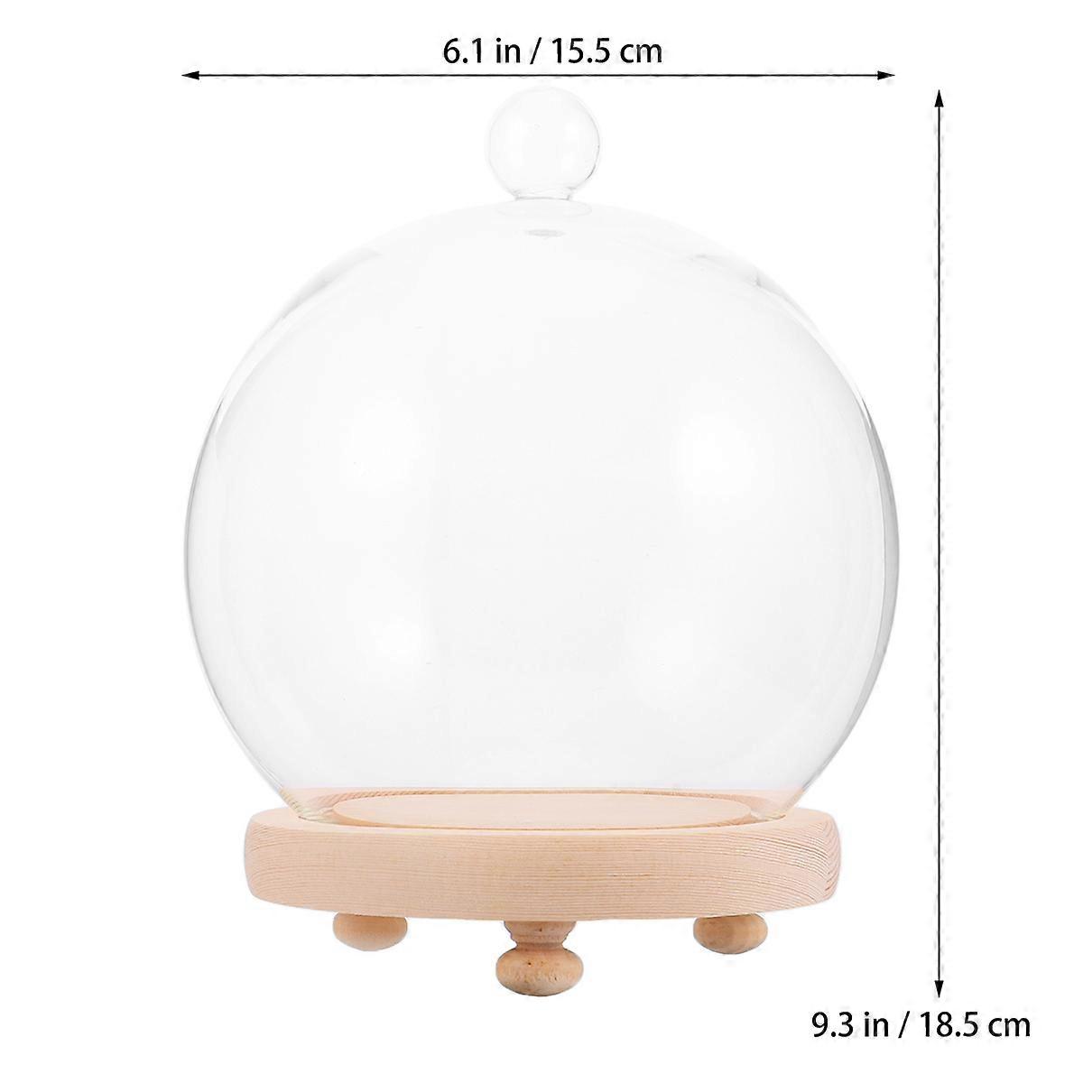 Round Shape Floral Glass Cover With Wooden Plinth For Displaying Treasured Collectibles Size 18.5X15.5cm 1 Set