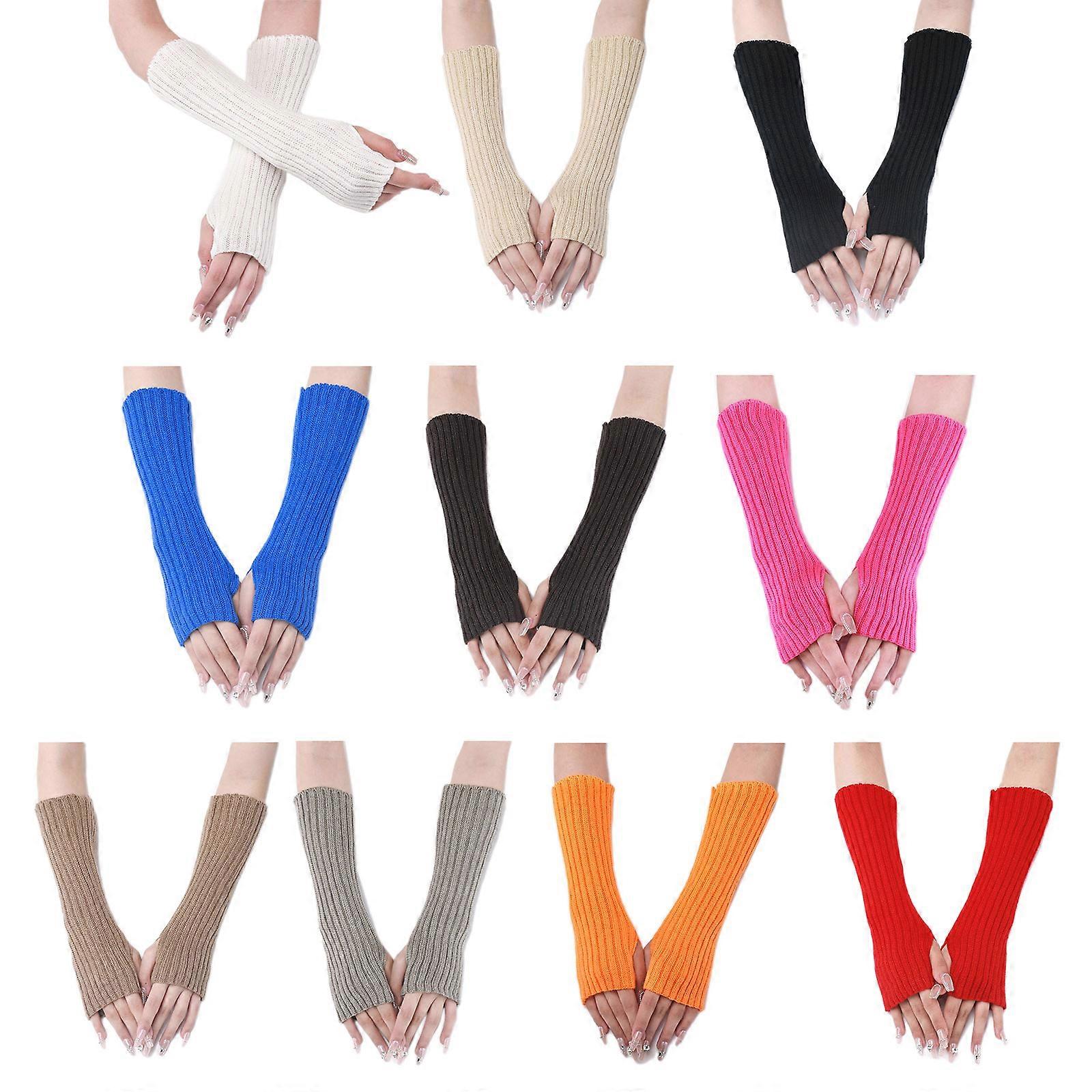 Exquisite Knitted Arm Cover 30cm Fingerless Gloves Solid Color Half Finger Arm Sleeves for Women Girls Friends White