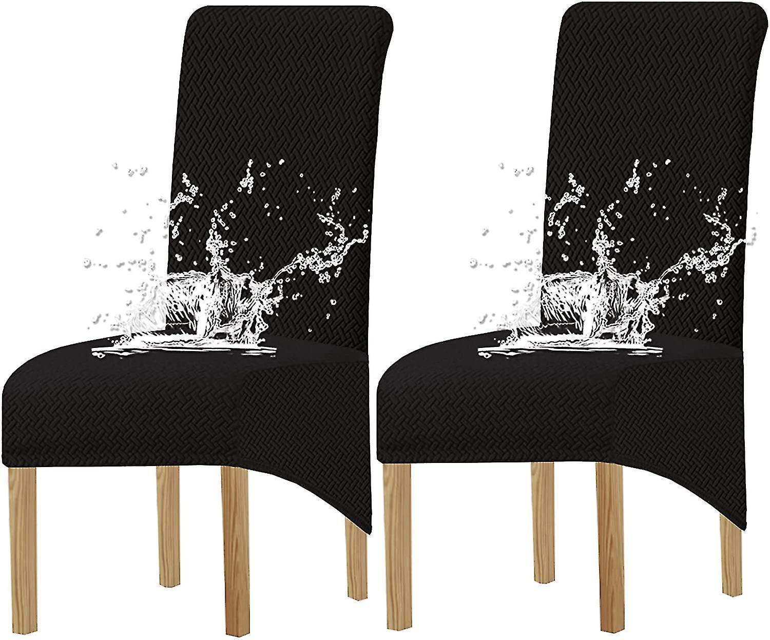 Chair Cover, Large Stretch Jacquard Dining Chair Cover, Black, 2 Pieces