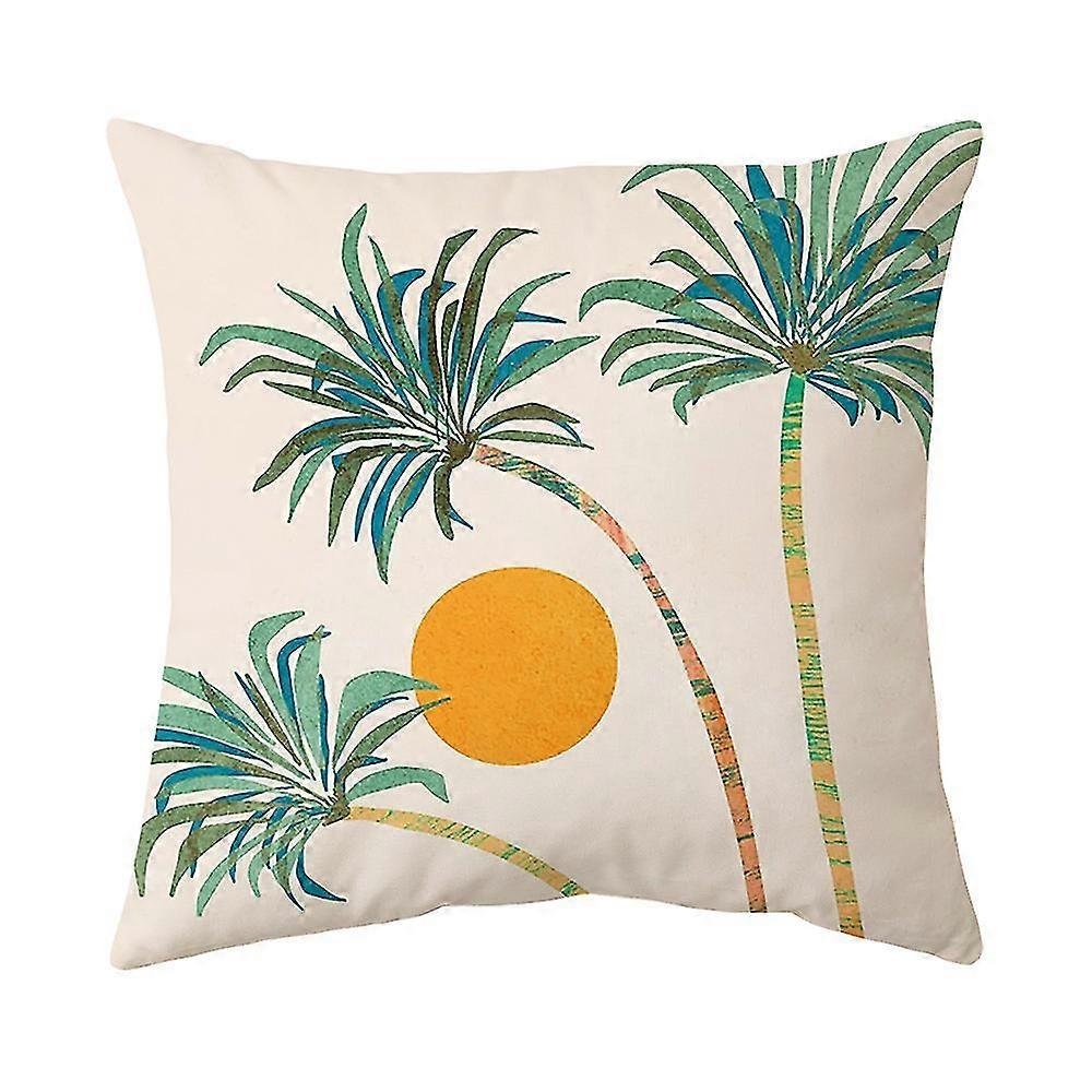 Cushion Cover Modern Tropical Leaves Mountains and Sun 45 x 45 cm Pillow Case for Sofa Living Room Bedroom Chair Garden 4 Pieces