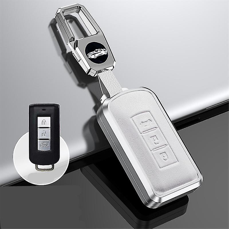 Car Key Shell Key Case Cover Galvanized Alloy For Mitsubishi Outlander Lancer 10 Pajero Sport ASX RVR L200Product Name: Galvanized Alloy key package Material:Genuine Leather+ Galvanized Alloy Color: black white blue brown Specifications: Single Packaging: exquisite gifts
